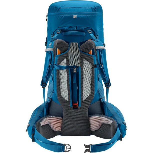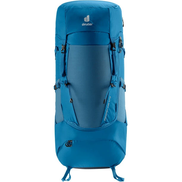 Its superior carry comfort is down to the deuter Aircontact back system with Air Spacer mesh and a large ventilation channel, plus ergonomic ActiveFit shoulder straps and an adjustable sternum strap. The Y-shaped frame, mobile hip fins and ergonomic lumbar pad combine to distribute the load effectively. A full-length, J-shaped zipper on the front makes contents easy to locate lower down in the main compartment. While large, detachable hip fin pockets (3 L) provide extra storage and keep items within reach. A zip-out 1.5-liter bottle holster also lets you hydrate on the move.