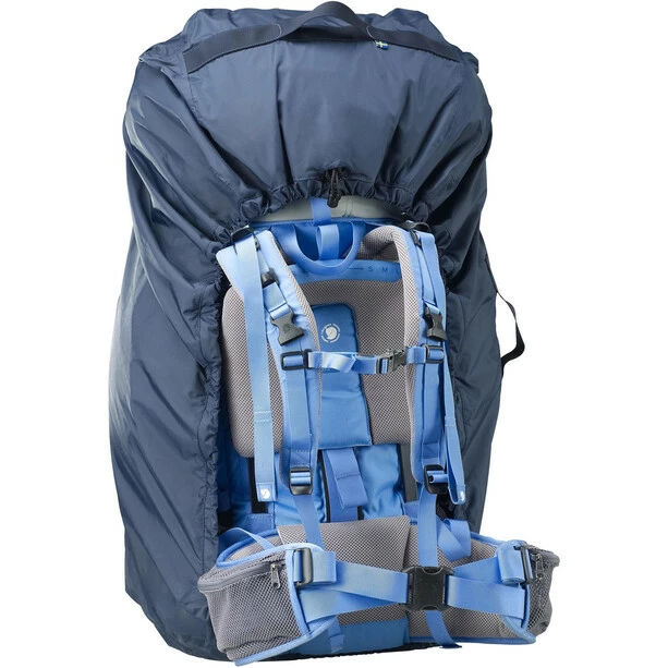 Travel protection/rain cover made from durable nylon. Protects the backpack from wear and tear when travelling by air and also serves as rain cover when you arrive and go trekking. Generous handles on the top and on the side. Zipper with loops for a padlock. Drawcord adjustment; the extra cord can be rolled into a special opening for out of the way storage during transport. For 90-100 litre backpacks. Transparent pocket with space for an address tag/business card. Can be packed away in an integrated pocket when not in use.