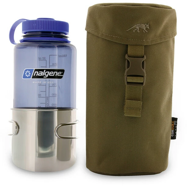Insulated drinking bottle holder designed for a 1-litre bottle by Nalgene and a Tatonka Handle Mug (items 4072 and 4073) that fits around it perfectly.