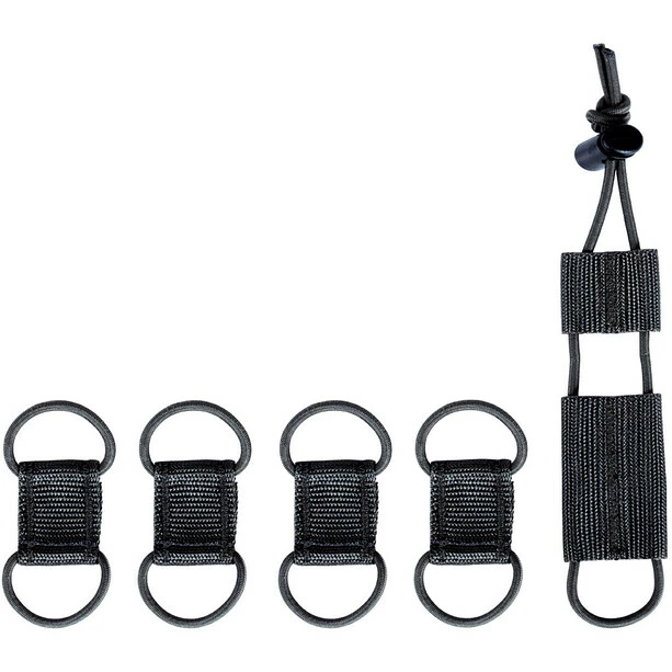 Set of attachment elements for cables and radio equipment accessories plus 1 x tourniquet. Loops into an existing MOLLE system.