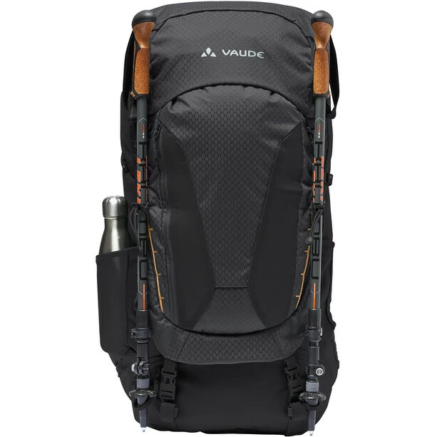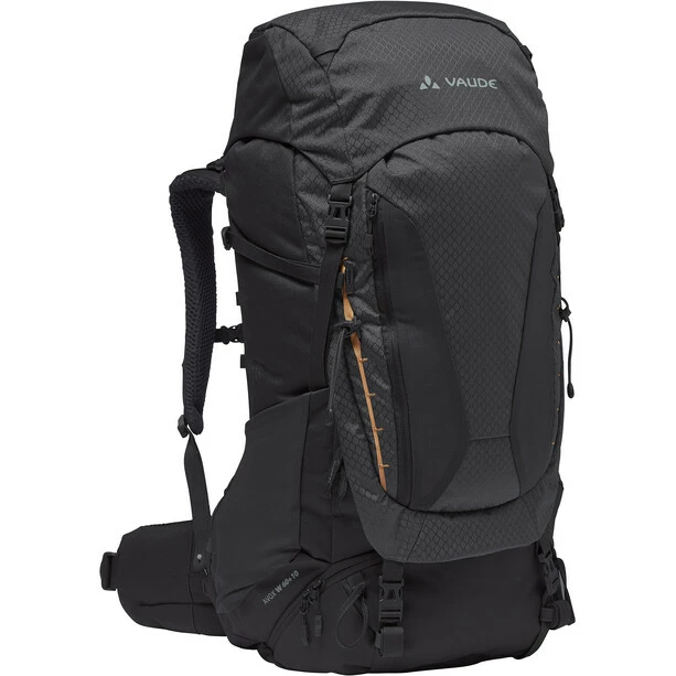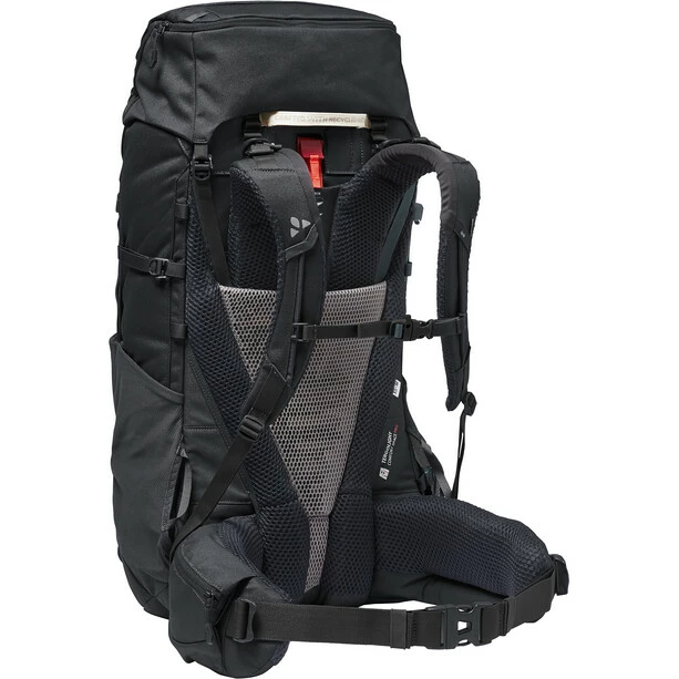 A reliable companion for three weeks in Scotland or Scandinavia. If you like hiking through solitary landscapes, you need a durable, comfortable trekking backpack with plenty of storage space. With a volume of 60 liters, this pack will comfortably haul all the gear that ambitious hikers need for several days. The Tergolight Comfort Space Pro suspension system transfers weight optimally to the padded hip belt – which is key when you’re carrying a heavy load. A recess in the lower padding of the pack reduces pressure on the sacroiliac joint and relieves lower back pain. The pack’s back length and load positioning straps are individually adjustable. With shorter shoulder straps and back length along with a well-designed hip belt, this women’s trekking backpack adapts to the female form. The softly padded Ergoshape shoulder straps ensure ample freedom of movement for your arms. You can access the main compartment from the top or the front. The bottom compartment is perfect for things like a sleeping bag while your water bottle or map can be stowed in the side pockets that are easily accessible without having to take the pack off. The front pocket’s got space for a things like a rain jacket. Compression straps and a daisy chain can take additional gear. The compression strap at the top comes with a replacement buckle in case one breaks while you’re on the go. You can expand the volume another 10 liters with the height-adjustable, detachable lid which can also be converted into a waist pack. Includes an integrated rain cover. The extremely robust and abrasion resistant main material is 100 % recycled. The VAUDE Green Shape label stands for environmentally-friendly, functional products made from bluesign certified, sustainable materials.