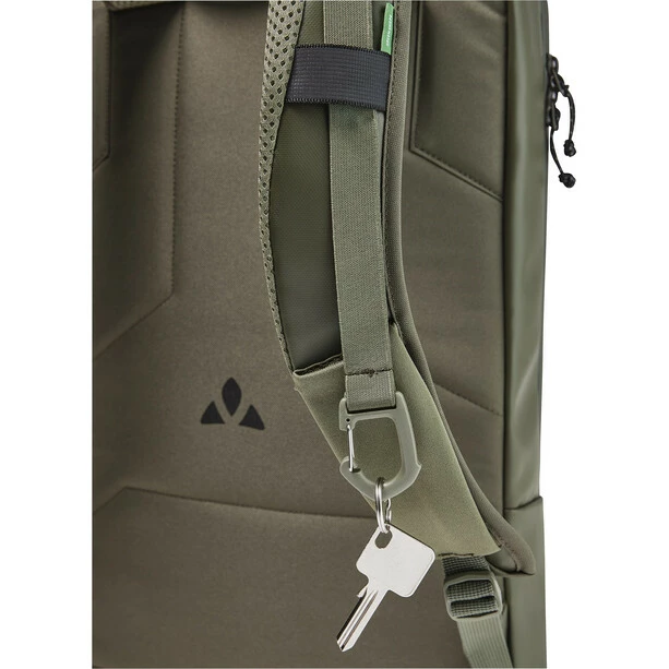 Small but mighty: With little luggage, the Mineo Backpack 17 is the optimal city backpack! Its 17 liters of volume swallow a 13.4 “laptop and other data media, on top of a water bottle, writing pad, raincoat and other things fär on the road. Everything is well divided and tidy. And in case of excess baggage can be attached to the outer loop – called Daisychain – additional such as VAUDEs additional bag Mineo Tech Pouch, the bike lock or a jacket. The material is also oho – it is a bluesign certified polyester material, robust, durable, water and dirt repellent. Reflective elements, a pen holder and a trolley holder are other pleasing details. Access to the main compartment is very convenient due to the large, asymmetrical zipper – so even the lower luggage can be easily accessed. A small exterior zippered pocket keeps cell phone, tissues and wallet quickly at hand. The back padding and ergonomically shaped shoulder straps provide comfortable carrying. And if you stand in front of the front door, the integrated rubber band key holder on the shoulder strap the key (or even the card) is immediately at hand – without taking off the backpack.