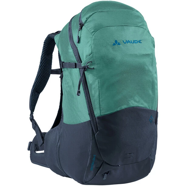 Compact, expandable all-rounder for women – the Women’s Tacora 26+3 has room for everything you need to take with you on a hike or the daily grind. This hiking all-rounder has plenty of features and is a real organizational talent: It has practical compartments with a map pocket, an insert for your electronics and a removable valuables pouch. Accessories and water bottles can be stored close at hand in the side mesh pockets – and when there’s a bit more, the zip volume extension offers 3 l of additional storage space in a flash. The padded shoulder straps have been adapted to the ergonomics of women – so the backpack fits perfectly without constriction. The comfortable Aeroflex 3D suspension system makes the Women’s Tacora 26+3 stable and provides comfortable back ventilation for sweaty ascents. If necessary, hiking poles can be attached to the pack in a few easy steps. An integrated rain cover not only keeps out the rain – thanks to its straps, it can also be used for your shopping or laundry. The VAUDE Green Shape label stands for environmentally-friendly, functional products made from sustainable and bluesign certified materials.